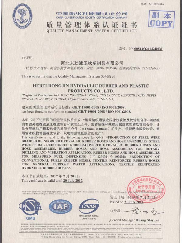 東勁品牌被評為“河北省著名商標”,企業管理通過了國家質量、環境及職業健康三項管理體系認證,產品品質有保證;
